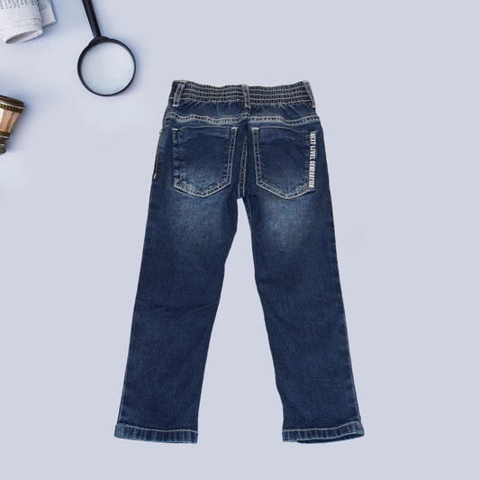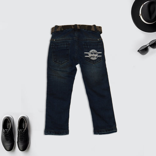 Blue Solid Jeans with Belt for Kids