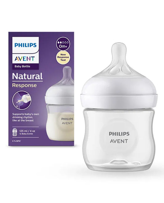 Avent Philips Natural Baby Feeding Bottle | Natural Response Technology Mimics Breastfeeding | Uniquely Designed Nipple releases milk only when baby drinks - 125ml