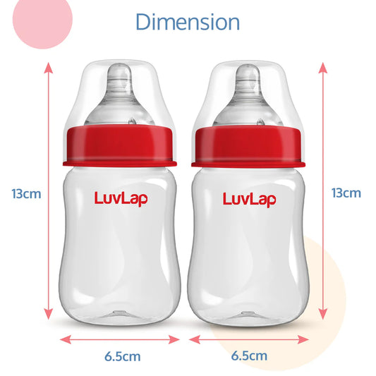 LuvLap Anti-Colic Slim/Regular Neck Essential Baby Feeding Bottle, 250ml (Pack of 2)