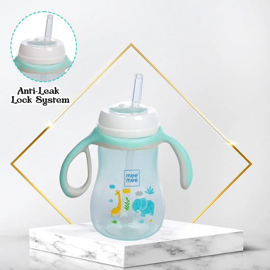 Mee Mee 2 In 1 Anti-Spill Sipper Cup (300 Ml) | Kids Sippy Cup With Soft Silicone Spout & Straw (Blue)