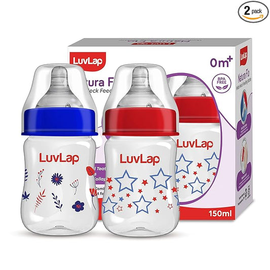 Anti-Colic Wide Neck Natura Flo Baby Feeding Bottle, 150ml, Red (Pack of 2)